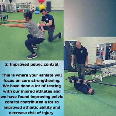 This is where your athlete will focus on core strengthening. We have done a lot of testing with our injured athletes and we have found improving pelvic control contributed a lot to improved athletic ability and decrease risk of injury