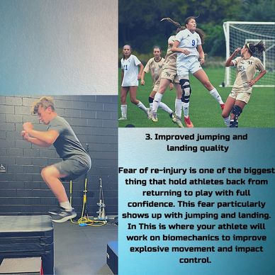 Fear of re-injury is one of the biggest thing that hold athletes back from returning to play with full confidence. This fear particularly shows up with jumping and landing. In This is where your athlete will work on biomechanics to improve explosive movement and impact control.